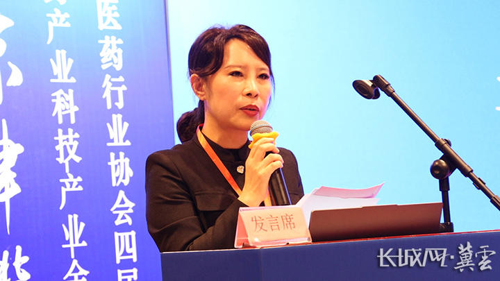 河北省医药行业协会副会长陶丽敏宣读议案。长城网·冀云客户端记者 何震 摄