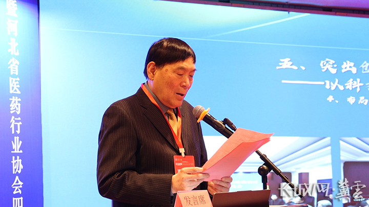 河北省医药行业协会书记刘骁悍做四届三次理事会工作报告。长城网·冀云客户端记者 何震 摄